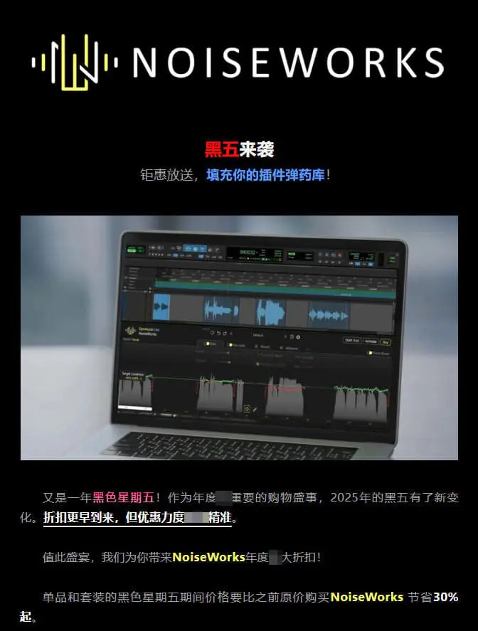 NoiseWorks黑色星期五促销开启,热门插件限时30%折扣